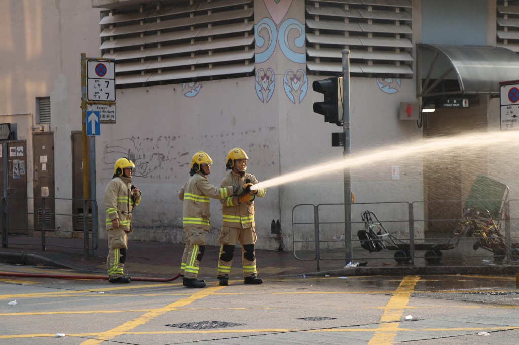 Firefighters put out a fire in Sham Shui Po